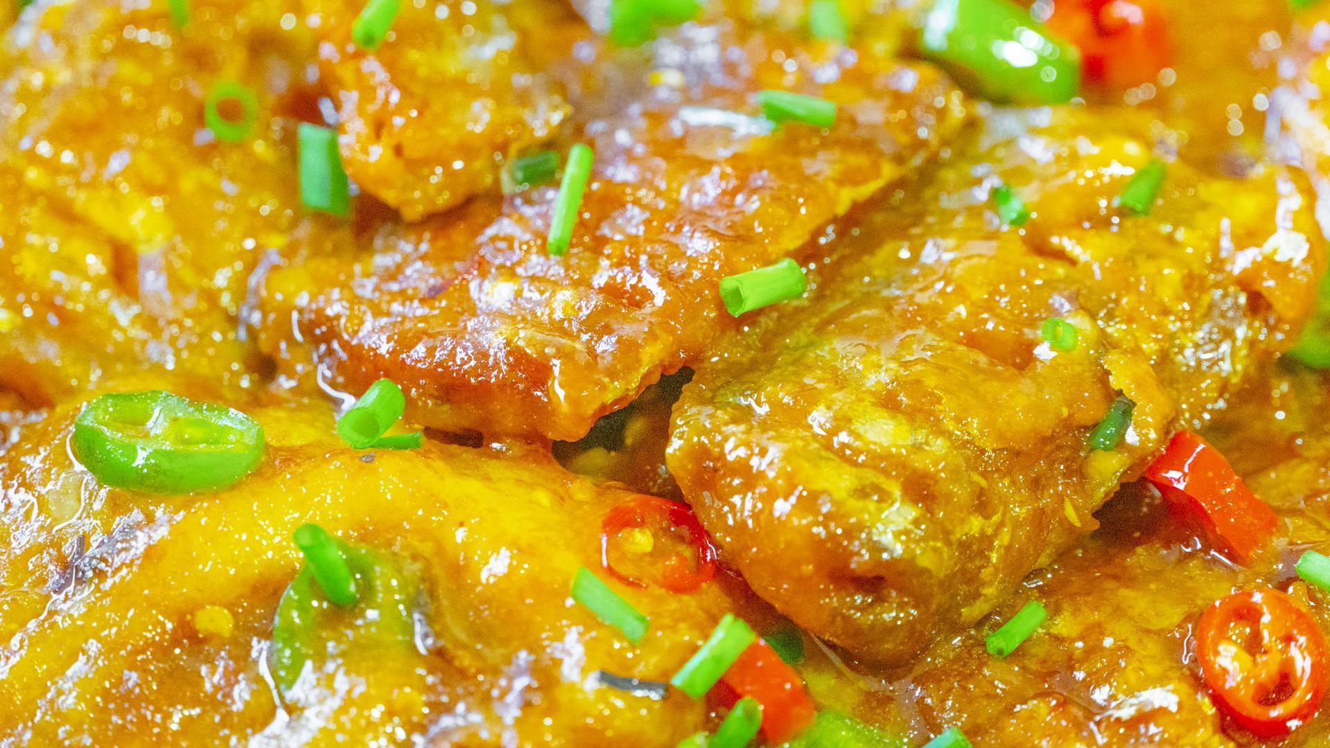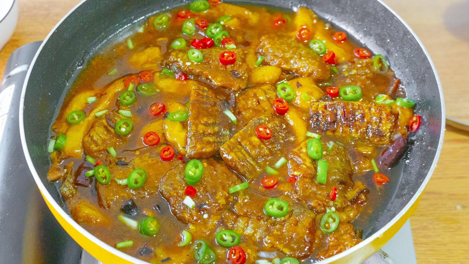 9、出鍋前撒點蔥花,好喫的燜帶魚就做好了。