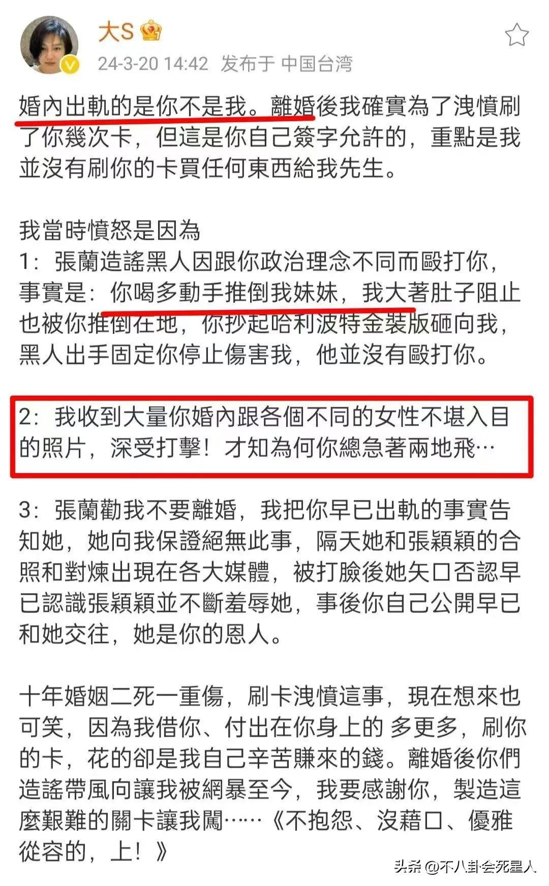 離譜!張蘭曬圖曝大S出軌,一個實錘照片都沒有,都是主觀猜測