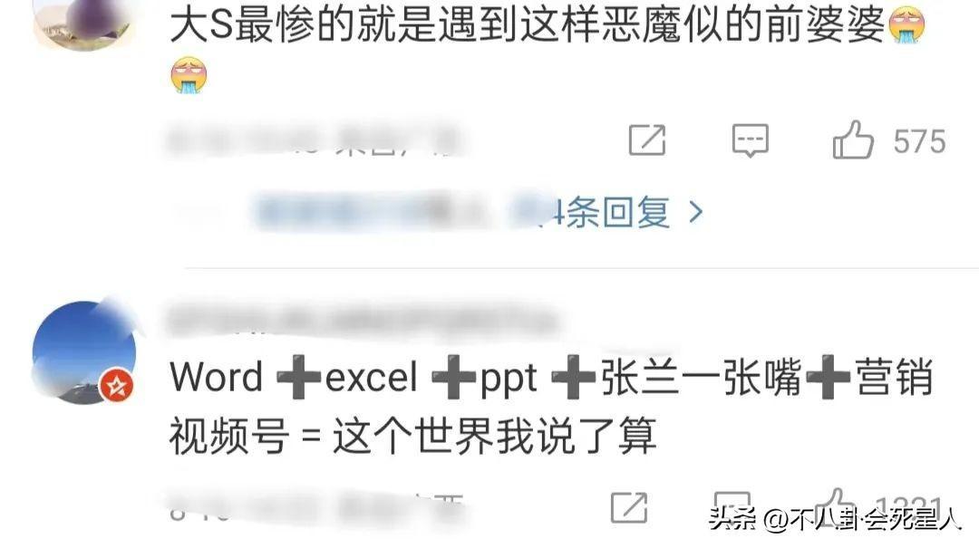 還有人看到張蘭這麼做,推測她是不是酸辣粉賣不動了,靠着前兒媳引流帶貨,表示大S攤上這樣的前婆婆,挺倒黴的。