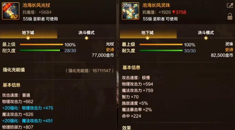 和武神面臨的抉擇差不多,“念珠”傷害更高,而“光杖”則是自帶精通,防禦、速度、以及抗魔值更高。