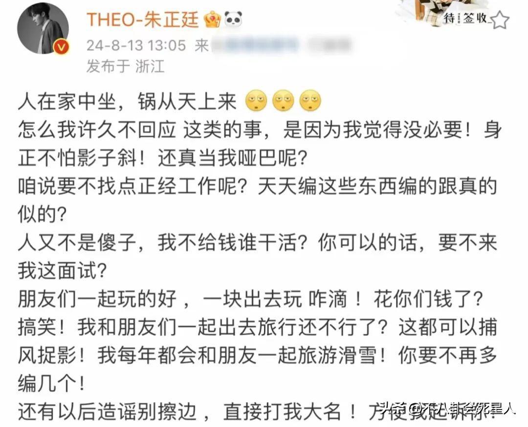 朱正廷還說過,如果有人抹黑他,他會正面回應,事實上確實如他所說,面對謠言正面回應了,這與範丞丞工作室的回應形成鮮明對比。
