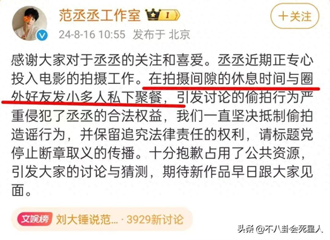 近日,範丞丞疑似戀情曝光的事,引發多位網友的熱議,工作室發聲明回應稱是範丞丞在拍攝間隙,與圈外好友和發小的私人聚餐。