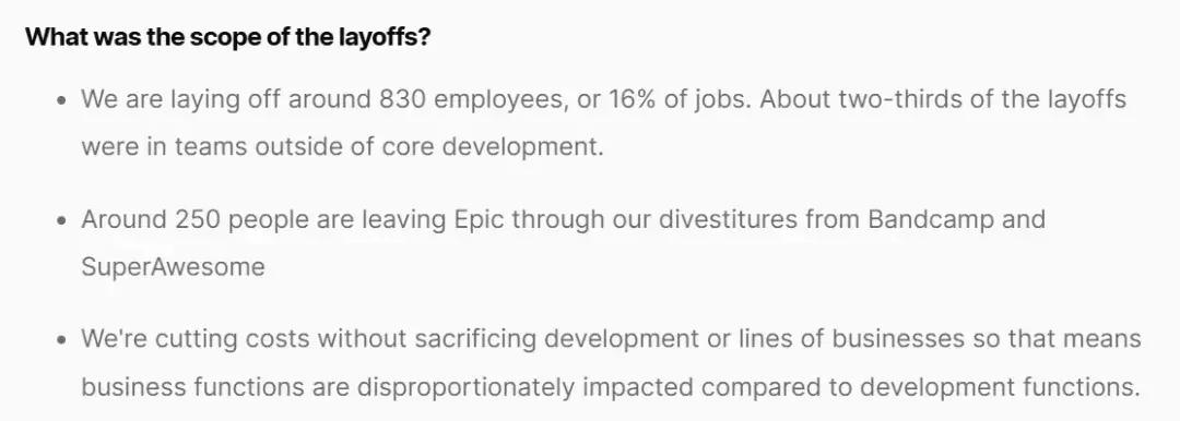 2023年9月,Epic解僱了約830名員工,理由是削減成本