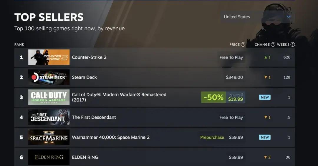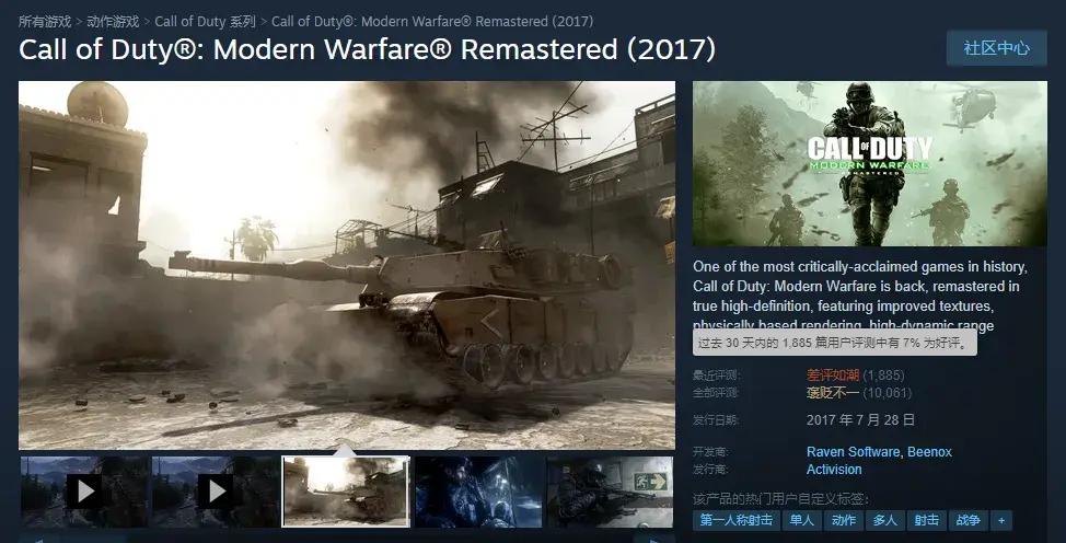 2016年發售的《使命召喚:現代戰爭重製版》(COD4RE),在這幾天悄然登上了Steam美區暢銷榜的第三名。