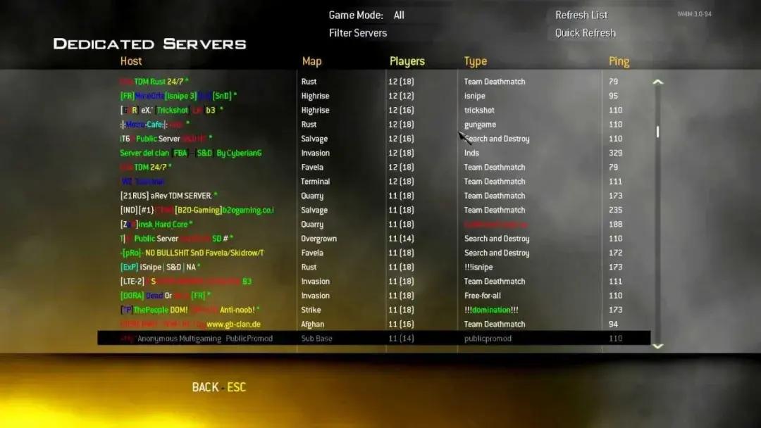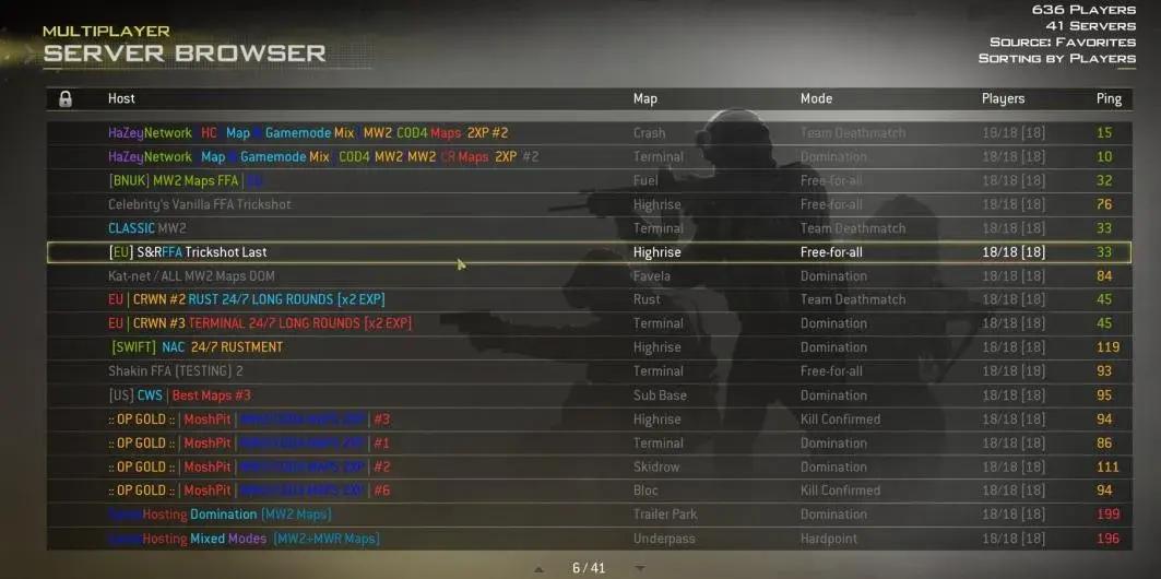 老COD6的私人服務器選擇界面