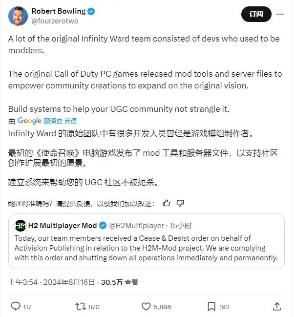 動視確實有着給模組團隊發律師函的充分理由,H2M註定活不長久。