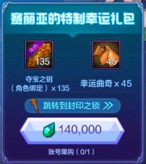 售價14萬泰拉,內含135奪寶鑰匙、以及45幸運曲奇。