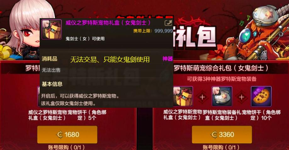而如果打算用點券購買“寵物/寵物裝備”,那麼女鬼劍專屬禮包要比普通稍划算一點,畢竟多了很多寵物餅乾,這可是後期升級寵物技能的好東西。