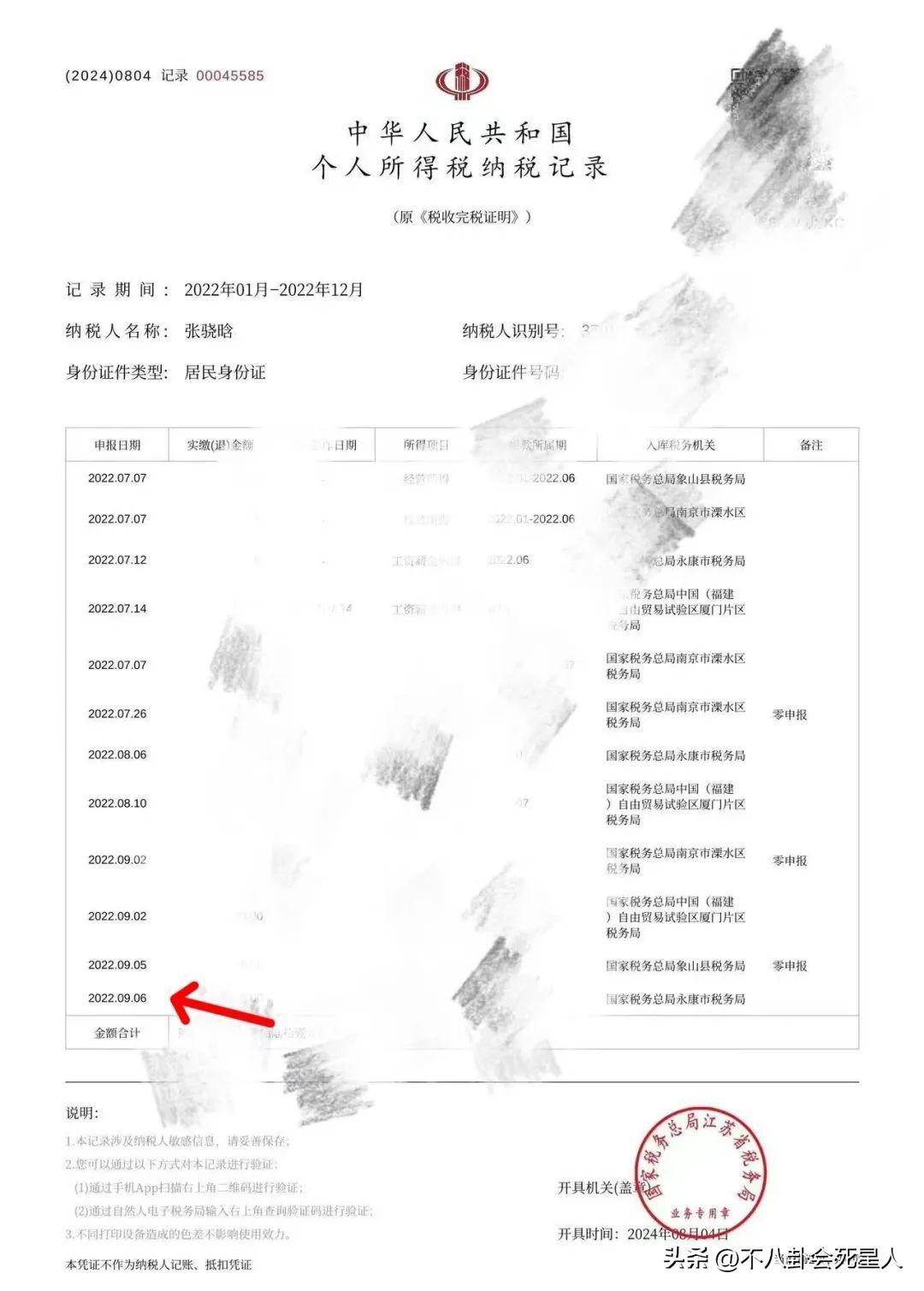 從張昊唯工作室曬出的納稅記錄來看,數據更新最後一次是2022年9月,後面就沒看到記錄了。
