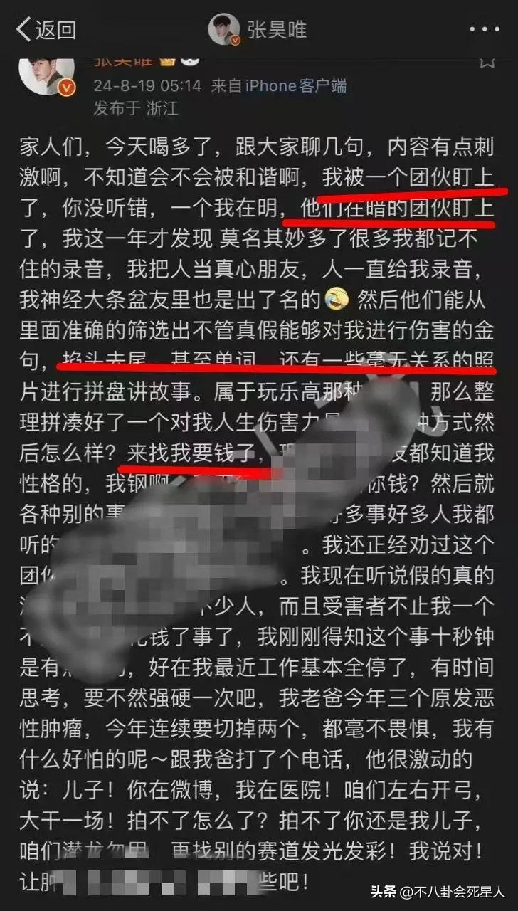值得注意的是,張昊唯曾秒刪過一條動態,他說他被一個團伙盯上,被掐頭去尾地編故事,看着似乎另有隱情。