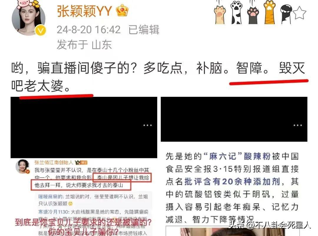 張穎穎喊話張蘭,“三年了,還惹我?把炒作的心思放在產品上能更大更強”。