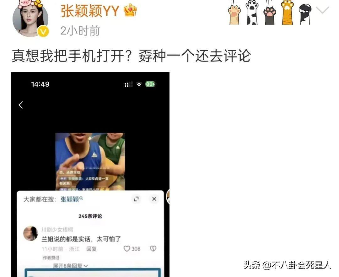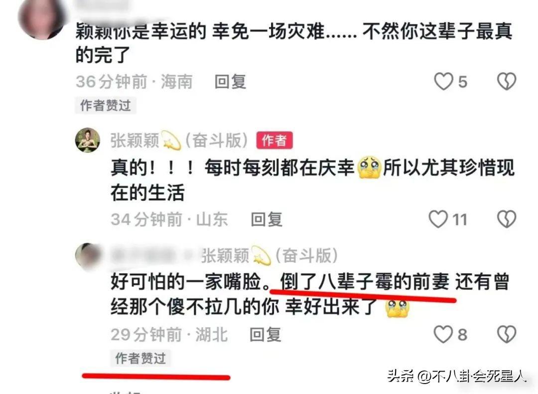 此外,還有網友說慶幸張穎穎是幸運的,倖免一場災難,張蘭一家嘴臉可怕,倒黴的大S和張穎穎幸好都出來了。張穎穎也點讚了這些評論,似乎在爲大S感到不平。