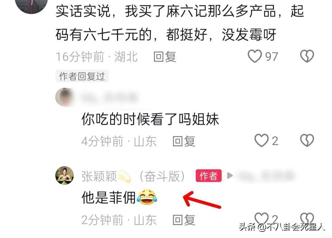 也有人提出質疑,認爲張穎穎不應該針對張蘭,話是葛斯齊說的,張穎穎回覆說這是借刀殺人。看到有網友說麻六記產品沒問題,張穎穎說對方是菲傭。