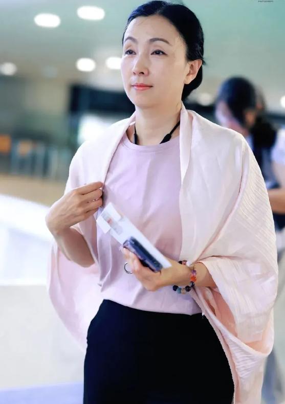 年過半百的陶紅,擁有着自己的生活方式,儘管褪去了明星光環,但至少她活的非常真實,在穿衣打扮上,也從不刻意扮嫩,基礎款的T恤+黑色長褲,疊穿同色系披肩。看上去十分溫柔。