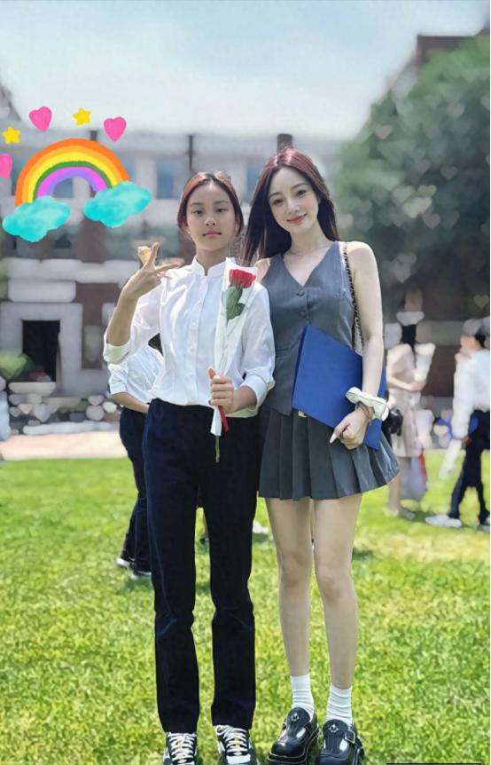 43歲李小璐真抗衰!穿短裙參加女兒畢業禮,比女兒還要有少女感