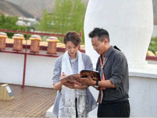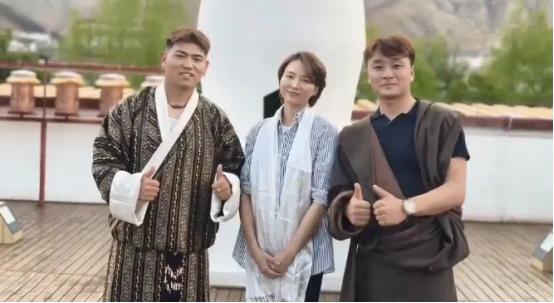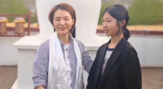 董卿,穿這件基礎款式的條紋襯衫,脖子上掛着白色哈達,一身裝扮顯得極其樸素無華,再加上齊耳短髮,氣質和從前早已天差地別。