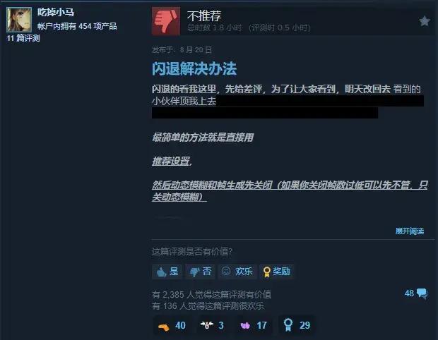 遊戲的差評目前多集中於優化問題,有玩家在評論區指出遊戲尚存各種運行問題,也詳細地附上了解決辦法。在等待遊科更新前,如果有讀者朋友也遇到了問題,不妨也去評論區看看各種不同硬件的解決辦法。