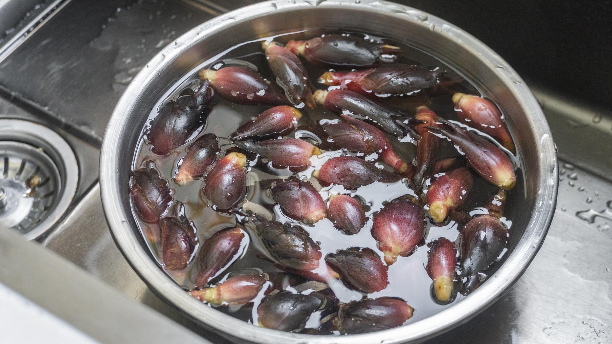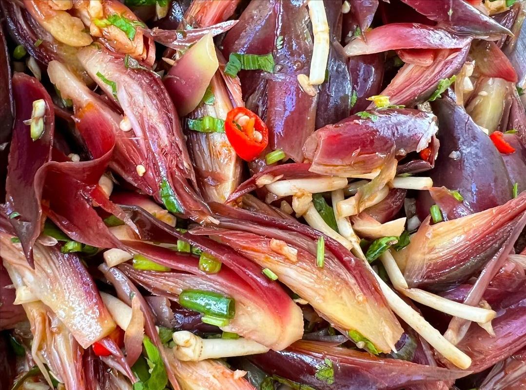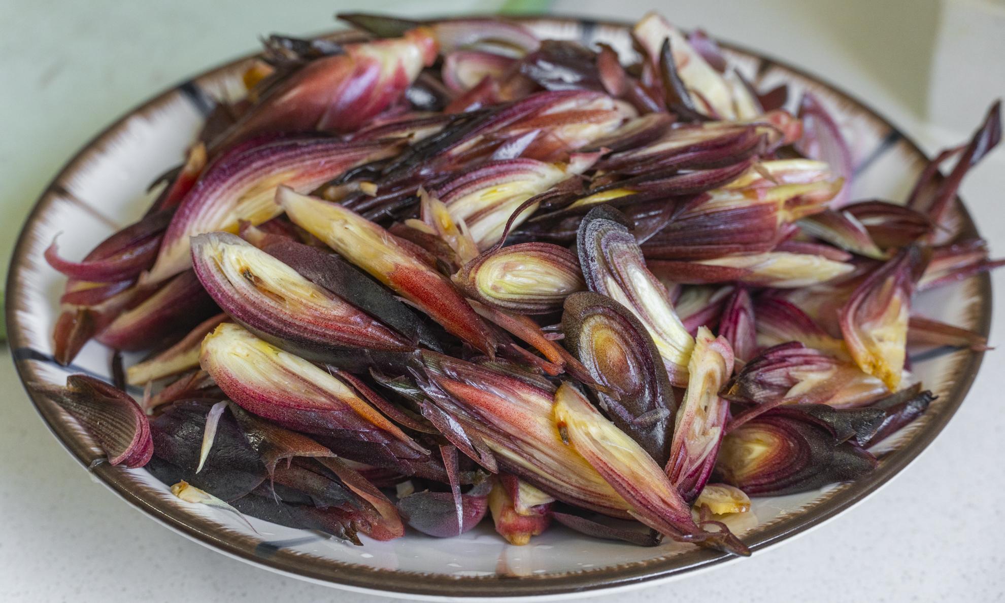 除了香菜、節節根以外,還有哪些菜是兩種極端呢?喜歡喫的人喜歡的不得了,不能喫的聞味道都聞不了。其實在我們這邊還真的有一種菜可以列入此係列裏面,那就是【洋荷姜】,我們這邊也稱爲圓荷、洋荷。很多人可能不知道,也沒見過,這種像花骨朵和筍尖的菜,是從地裏鑽出來的,就像春筍一樣,所以也有叫洋荷筍的。