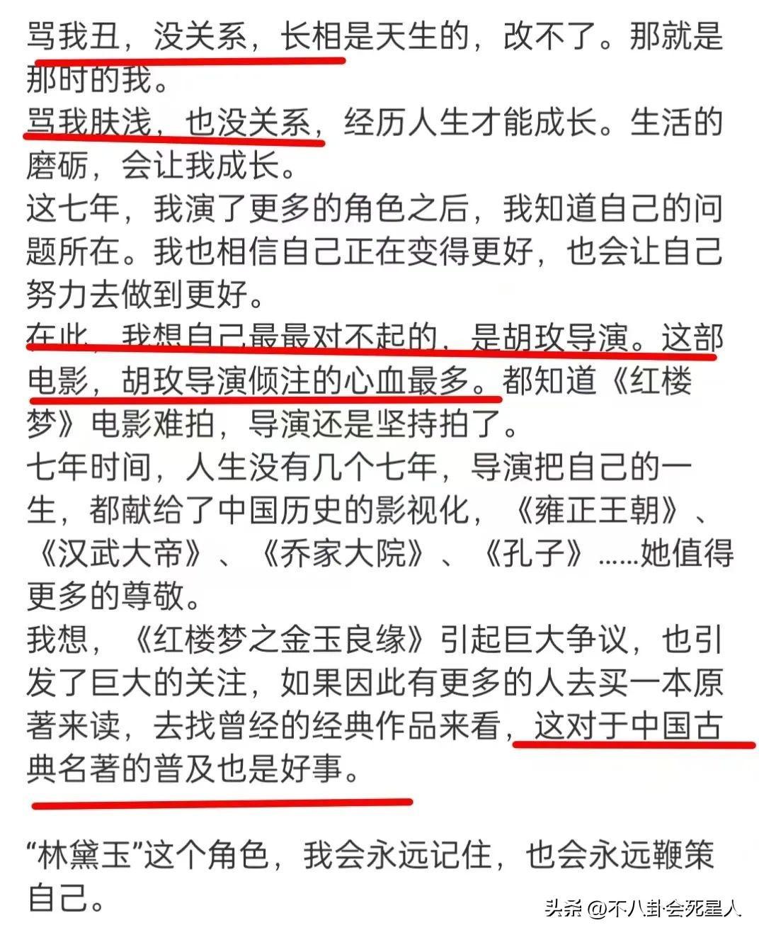 新林黛玉演員回應被說醜,導演破防再發文,“楊紫”們該醒醒了