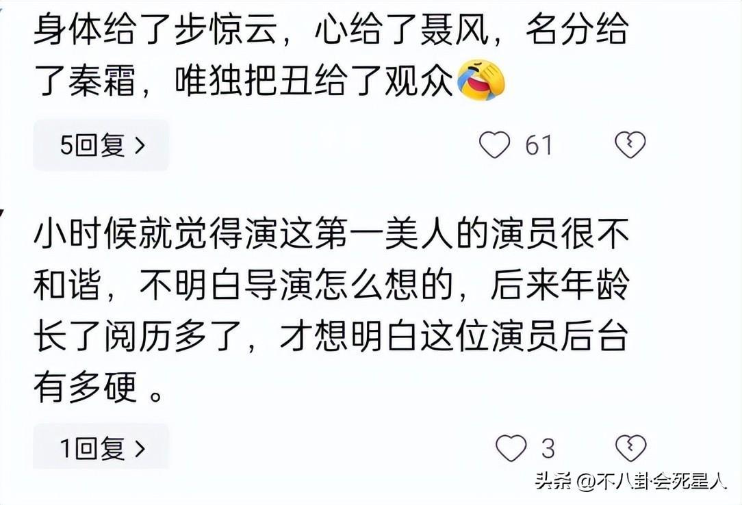 直到現在,提起《風雲》裏的孔慈,評論區都在吐槽顏值與人設不符,對觀衆的眼睛是一種考驗。