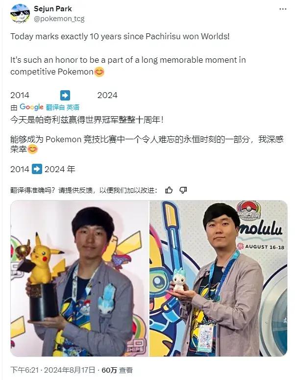 而在本屆大賽的VGC項目上,一位韓國職業選手Sejun Park依靠着“帕奇利茲”的出場,在一次成爲了全場以及玩家社區的焦點。