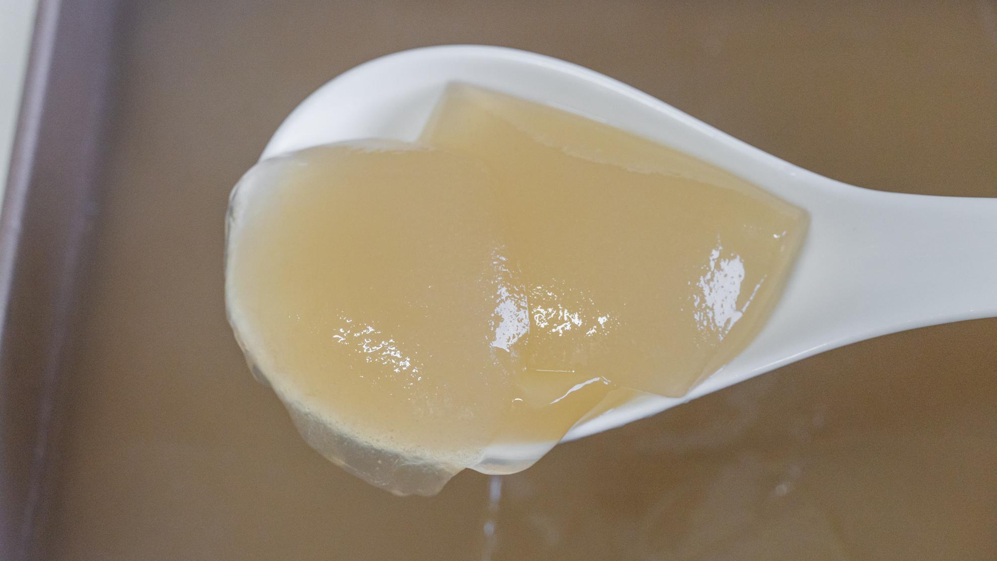 我這裏差不多就是4小碗的分量,一家人是夠喫了。這個比例做出來的涼粉會很嫩,喫起來特別的爽滑。