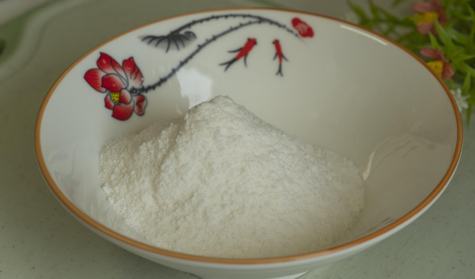 第六步:白涼粉兩袋,先倒碗裏面,再加少量清水化開,白涼粉一共就是100克。