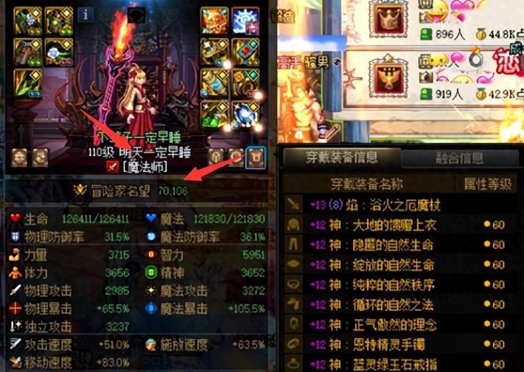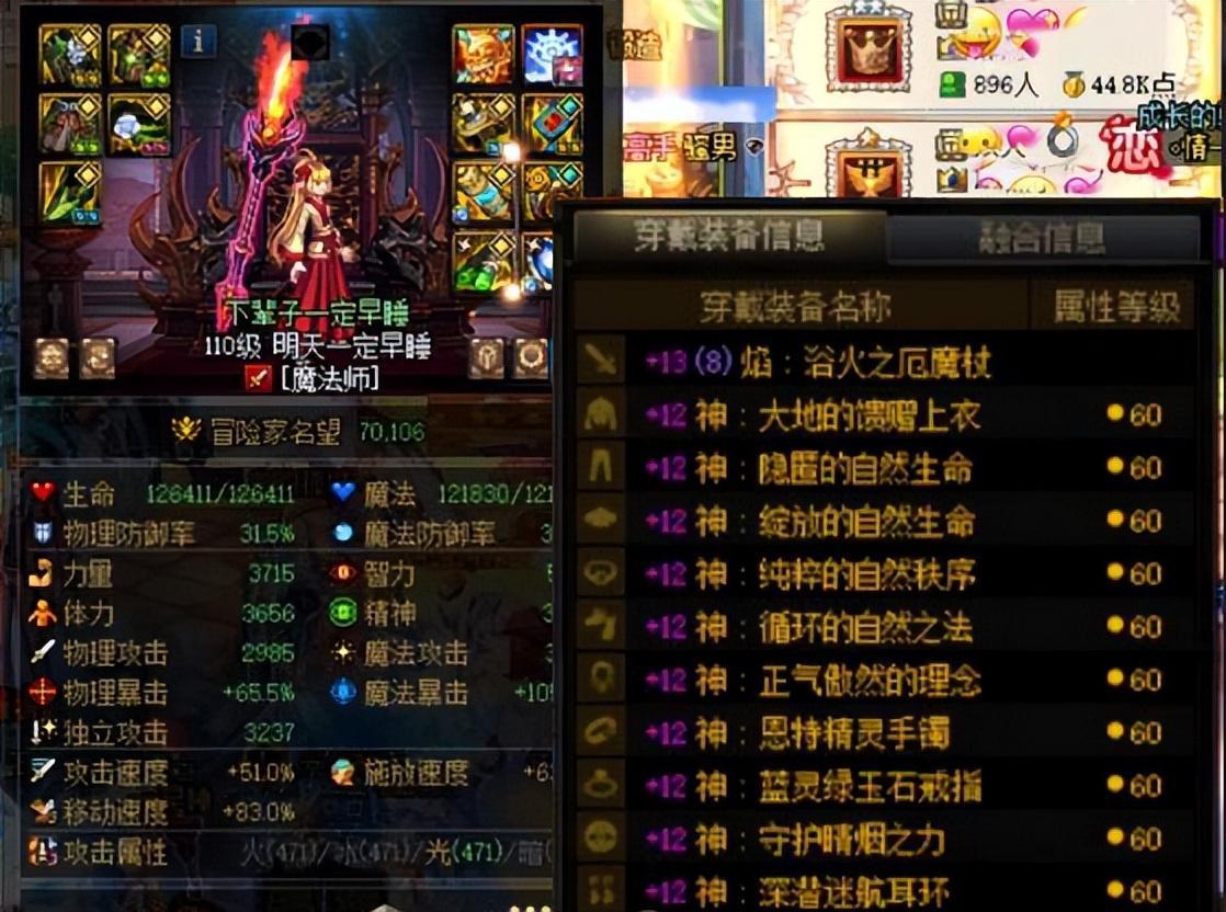 【2】全身紅12+神60詞條!武器還是增幅紅13的,可以說任意轉一個職業都是妥妥的主C水平,但無奈只是小小魔法師,別說主C了,搬磚都喫力。