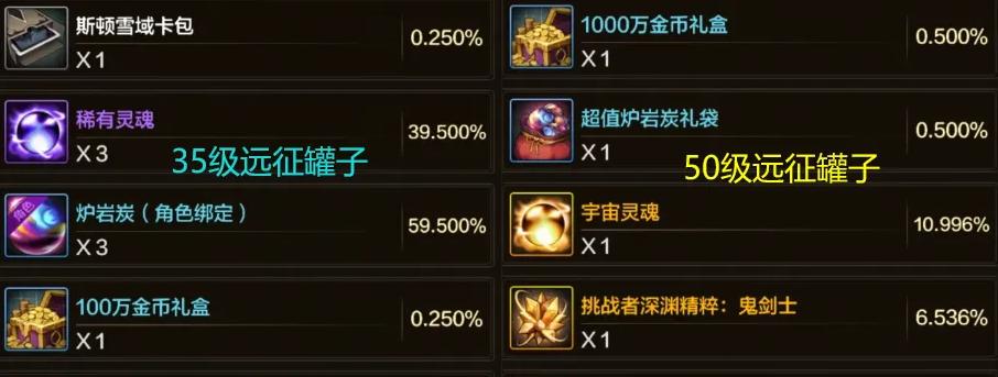 1、50級遠征罐子新增加了2種道具:1000爐巖碳+1000萬金幣!