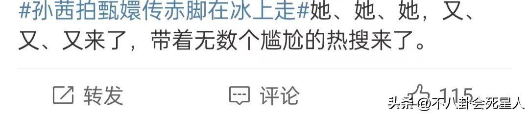 很快,孫茜拍《甄嬛傳》赤腳在冰上走就登上了熱搜,但是評論區不太樂觀,不少人吐槽,覺得熱搜很尷尬,孫茜的口碑並不算好。