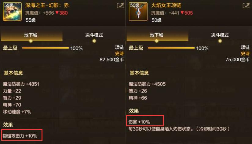 這2個項鍊最大的區別實際上在於「10%傷害和10%物攻」孰優孰劣的問題。