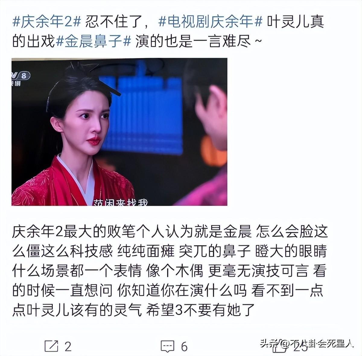 《慶餘年2》播出期間,其他演員沒有太大的質疑聲,只要鏡頭切換到金晨,就有不少觀衆吐槽。