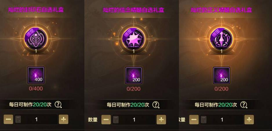 “燦爛封印石”需要400個混沌之息,“燦爛精髓”需要200個混沌之息,每天都可以製作20次。