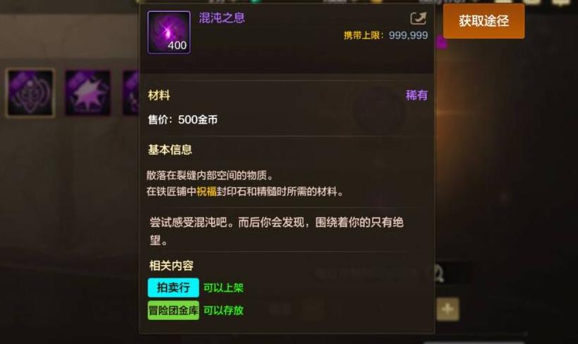 【核心點】改版後的混沌之息可以製作“燦爛封印石”和“燦爛精髓”。