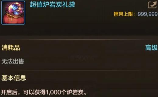“爐巖炭禮袋”打開後可獲得1000個爐巖碳!