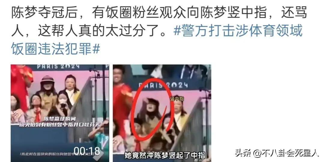 這個結果令很多瘋狂的孫穎莎粉絲不滿,網上引起了不小的爭議,回看奪冠現場,居然有觀衆對陳夢比中指還罵人,把飯圈文化帶到體育中來。