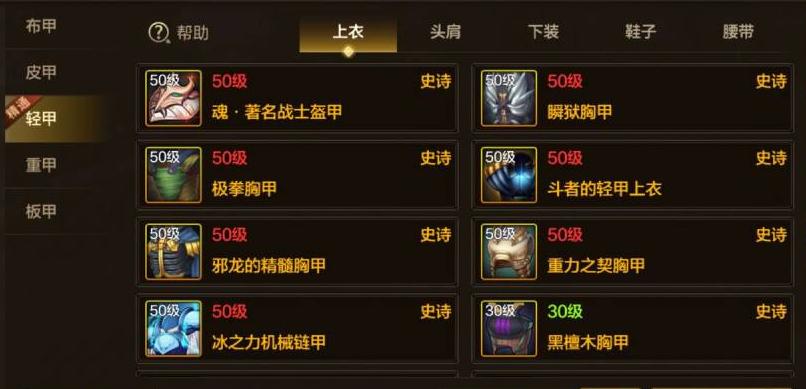 總共有6件史詩可供選擇,比較推薦的有2件: