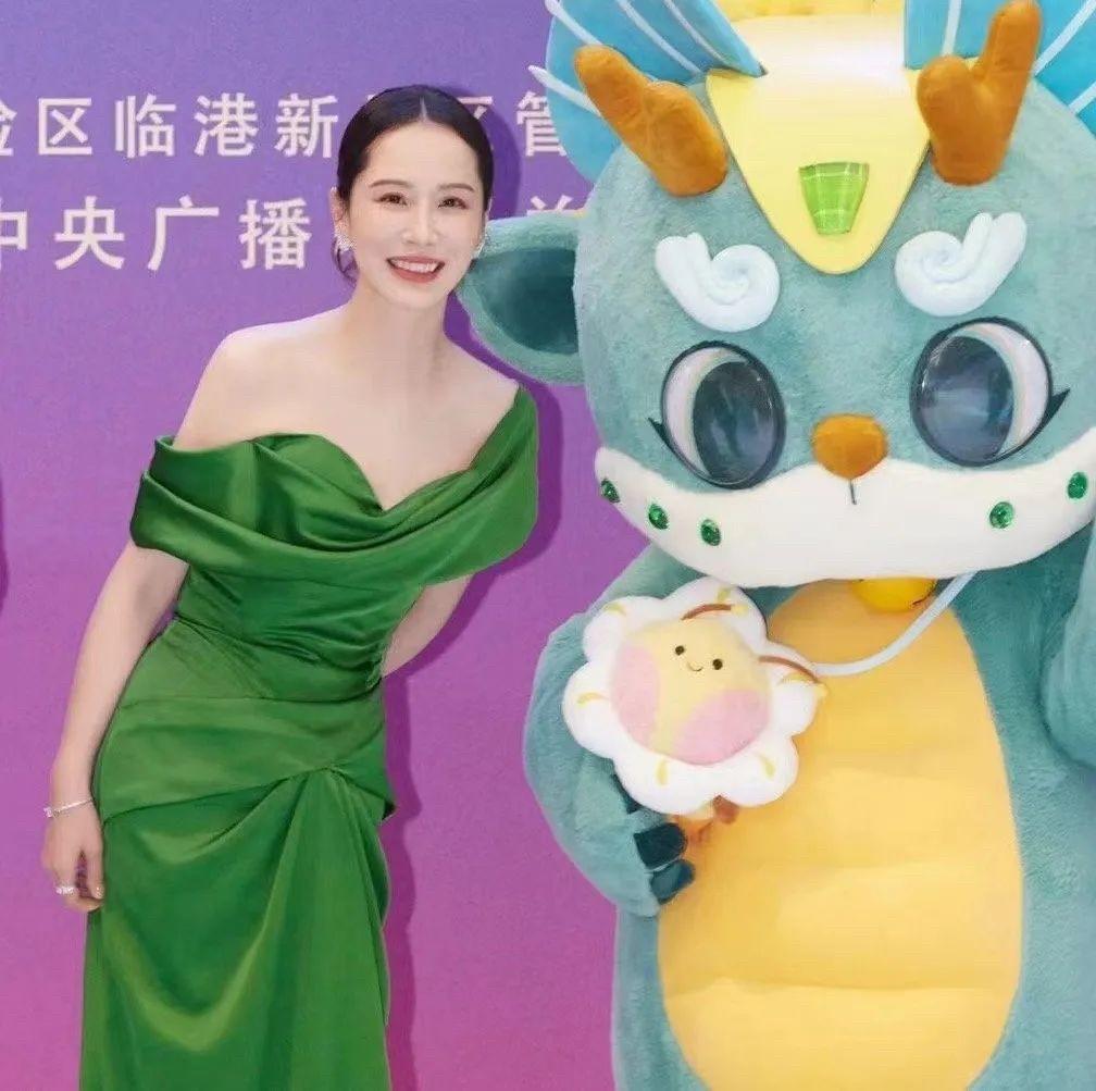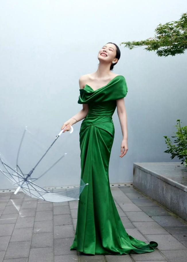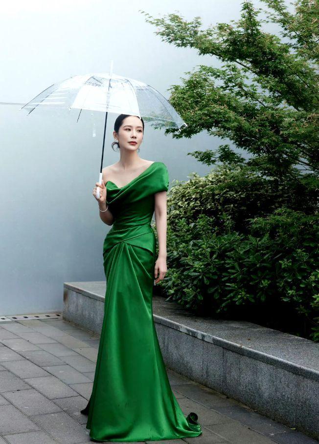 48歲海清也醫美了?一身綠裙風韻猶存,脖子透白看不到絲毫細紋