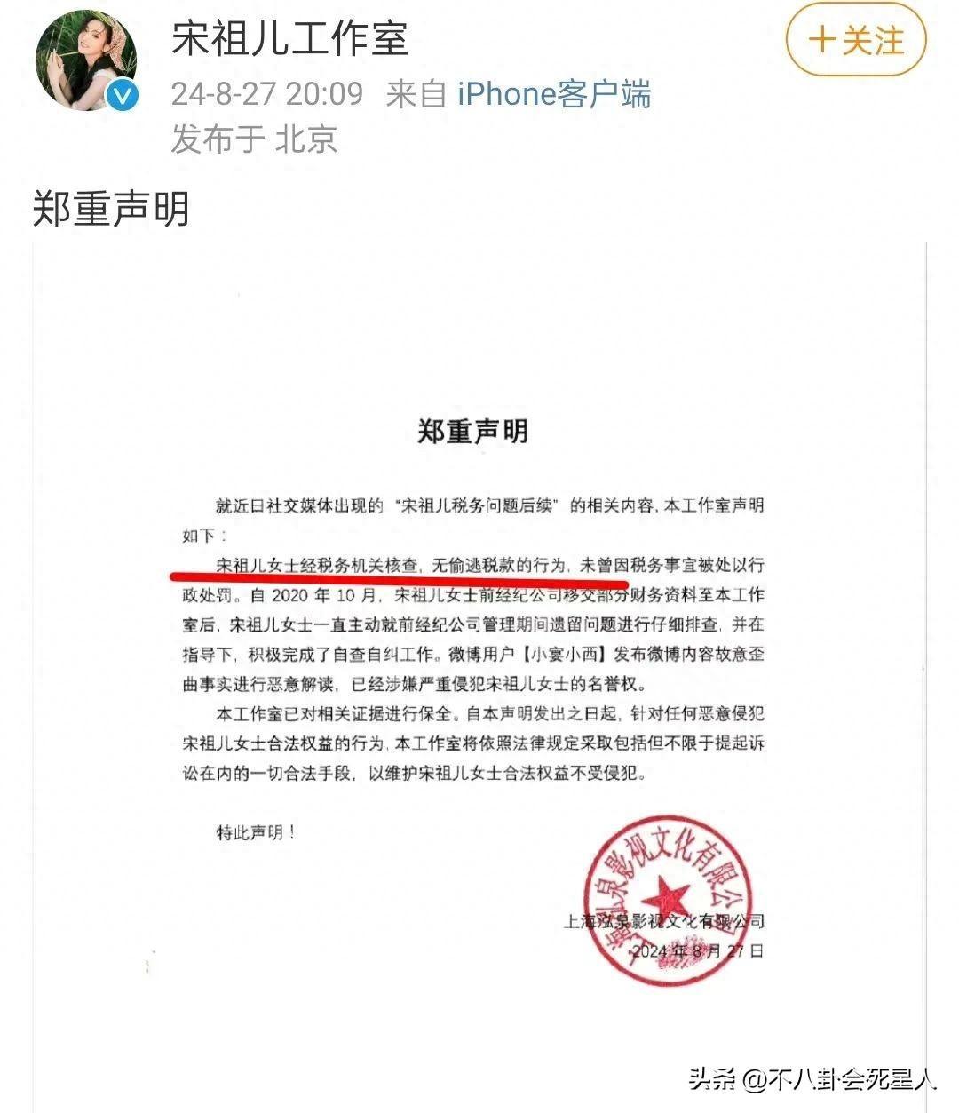 8月27日晚,“消失”了快一年的宋祖兒工作室,突然發佈聲明,否認偷逃稅,瞬間登頂熱搜引發爭議。
