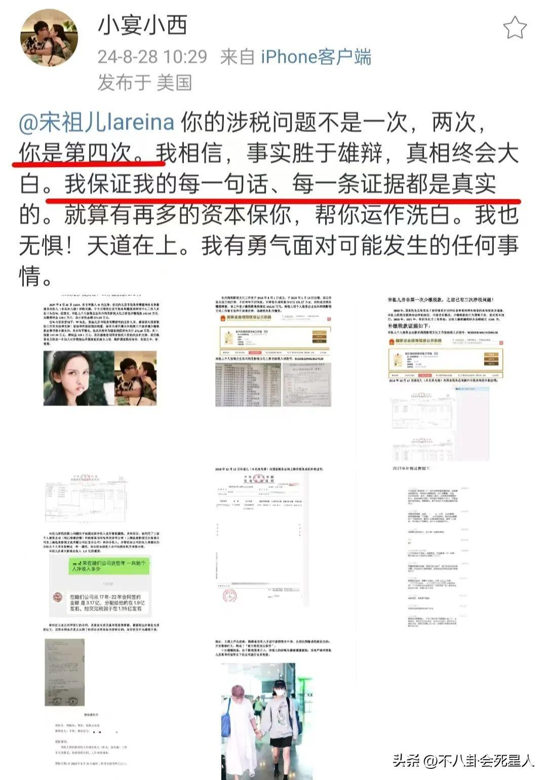 沒過多久,“小宴小西”又發文,表示宋祖兒涉稅問題不是第一次,而是四次,再次將宋祖兒推向輿論的高潮。