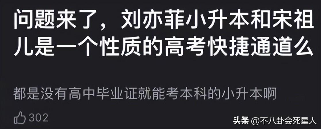 除此之外,劉亦菲也被捲入宋祖兒的風波中,有人質疑劉亦菲小升本,學籍的真實性。