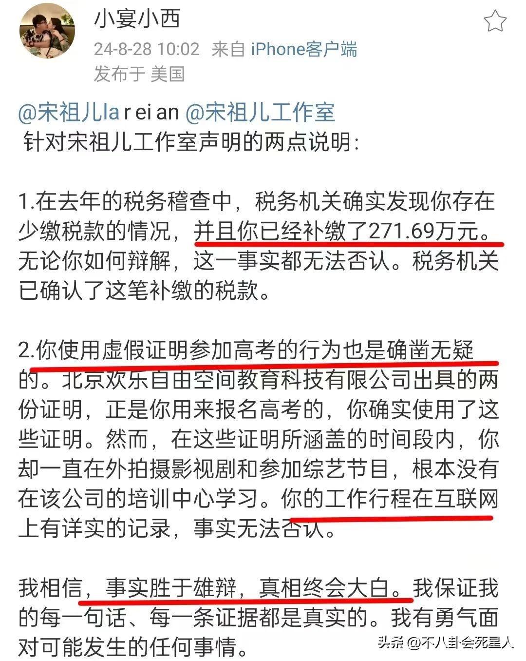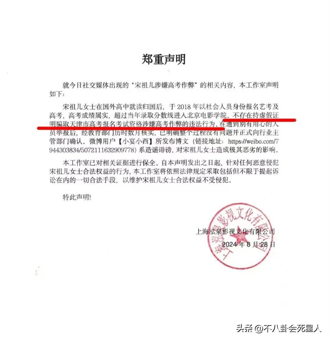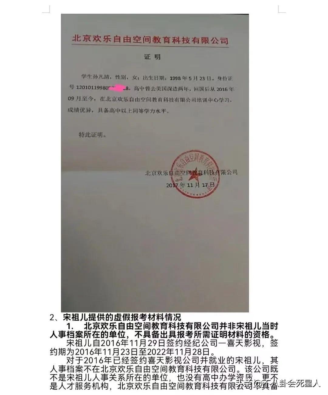 好傢伙,這個瓜真是越來越大了,稅務風波還沒完,現在還涉及到了高考。“小宴小西”發了一堆照片,表示宋祖兒涉嫌提供虛假證明材料,使用欺詐手段,騙取高考報名考試資格,違規參加高考進入北電。