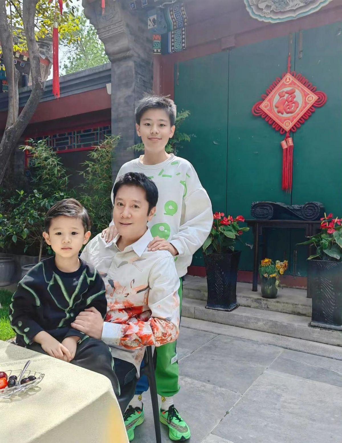 55歲蔡國慶攜家人出門,他風度翩翩似少年,妻子蒼老憔悴像奶奶輩