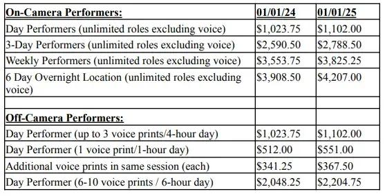在該協議中,成本25萬美元以上項目的演員日薪已經達到1023.75美元
