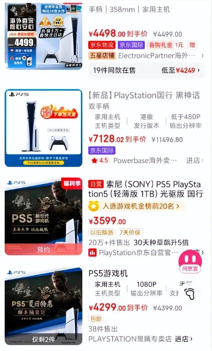 對那些想玩遊戲,又不打算另配PC的玩家來說,幾千塊的PS5確實顯得更划算。據《證券時報》走訪發現,《黑神話》不僅刺激了裝機市場的消費,也讓PS5跟着又火了一把,諸如深圳華強北的PS5早已賣斷貨,價格也是水漲船高。