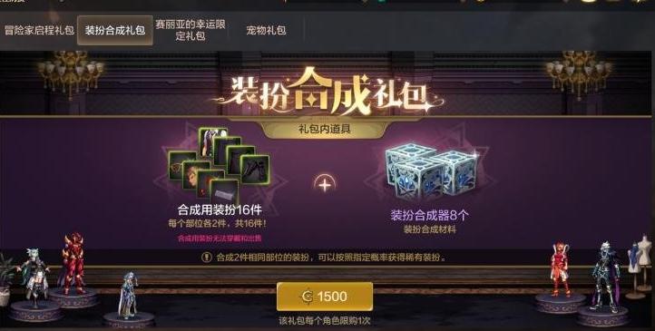 一是商城中有個“裝扮合成禮包”,內含16件時裝+8個合成器,售價1500點券,比單件購買要划算得多,但也只能用點券購買;