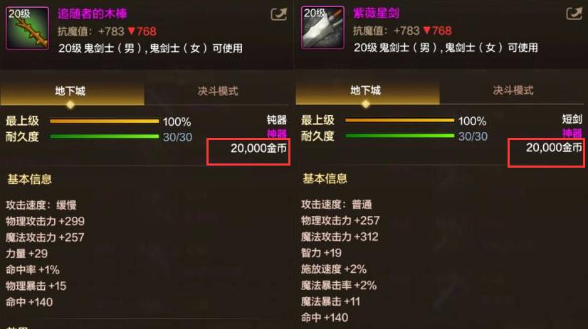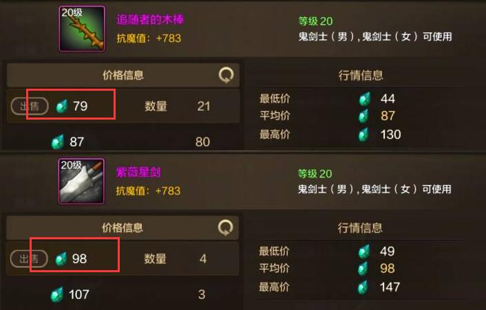 再以20級粉裝“紫微星劍”爲例,售價98金幣,賣給商店同樣2萬金幣,兌換比例爲「1泰拉=204金幣」!