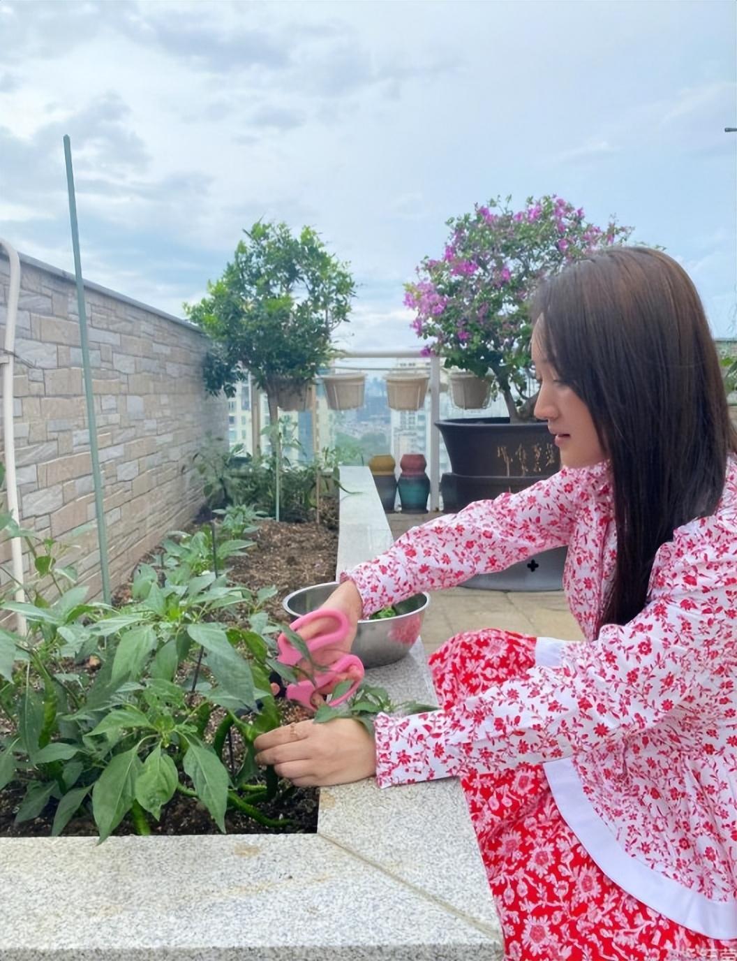 在自家的院子裏,楊鈺瑩養了很多植物,有花有草還有蔬菜,真是一個熱愛生活的女明星。