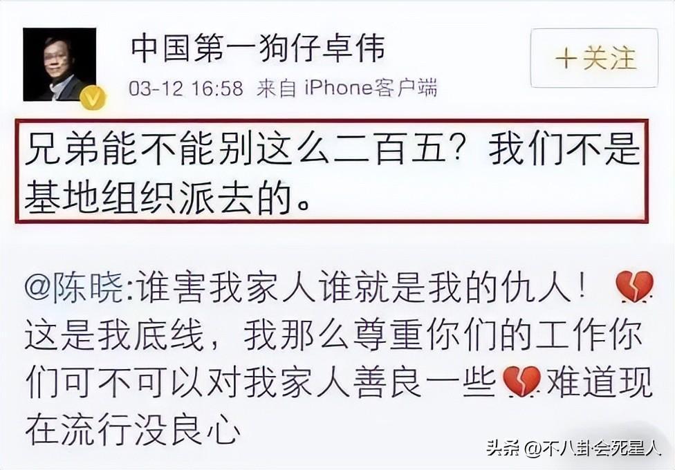 從白鹿到陳曉,短短几天時間,卓偉的兩次爆料都是假的,一次被闢謠,一次被粉絲曬圖“打臉”,這讓很多網友對他感到非常失望,沒想到“第一狗仔”也不可信了。