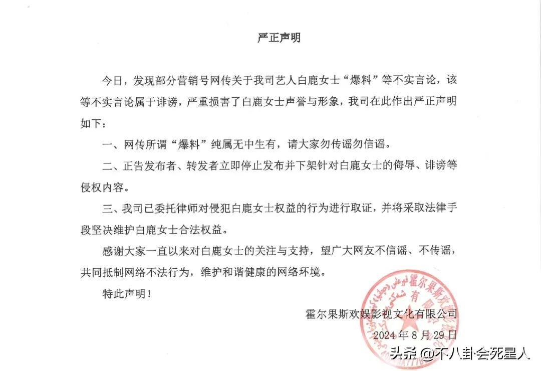 緊接着,歡娛影視發佈聲明,否認網傳消息,稱一切都是不實的。